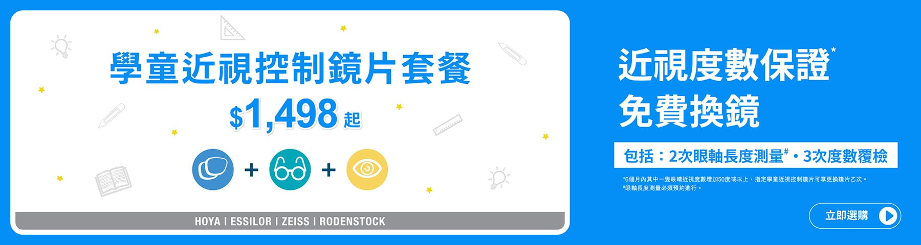 眼鏡88 一直關注香港學童近視比率高企的問題,近年致力加強學童近視控制服務,結合學童近視控制中心、專業護眼中心及眼科醫療中心,推出市場上最全面的一站式四大近視控制方案,為學童提供專業檢查及近視控制療程,延緩近視加深速度。眼鏡88期望未來繼續與各位家長攜手守護小朋友的眼睛健康!